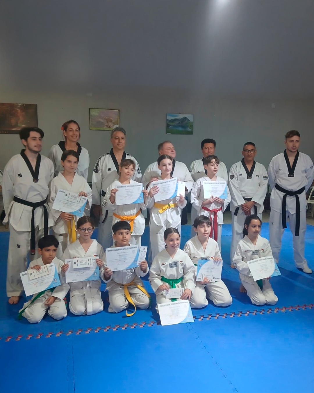 Los participantes rindieron sus exámenes de Gups y Danes de la Federación Santafesina de Taekwondo, avanzando de graduación y demostrando el compromiso y la dedicación con los que recorren este camino.